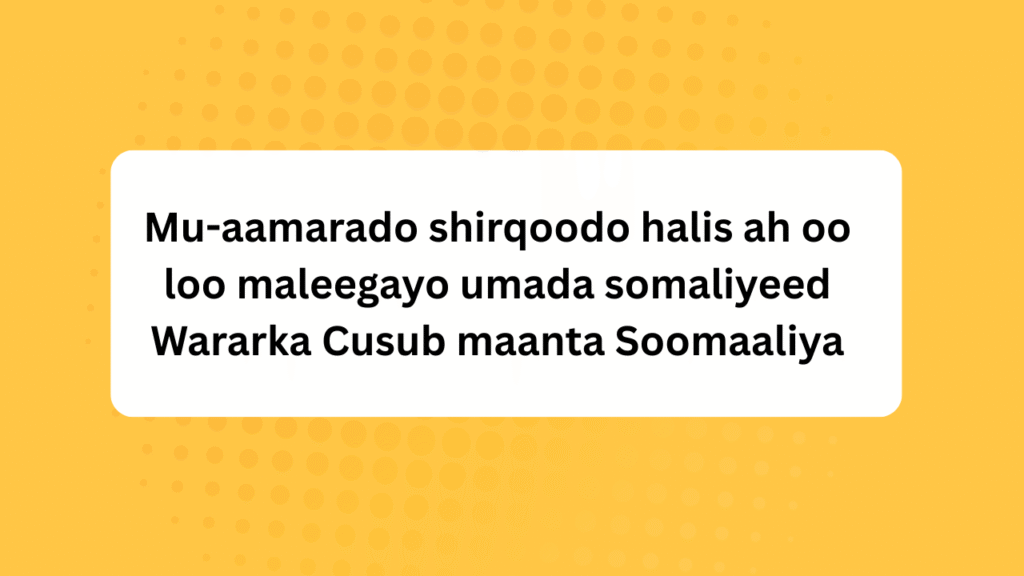 Wararka Cusub maanta Soomaaliya Sida aan ka soo xiganay sulayman haashi oo ah wariye rug cadaa ah falanqeeye ka tirsan bahda horfadhi media iyo baaritaano dheeriya oo aan ku daah qaadnay warbixino iyo xogo xasaasi ah — Waxa jira shirqoolo iyo mu aamarado ka dhan ah umada somaliyeed. Maqaalkan waxaan ku qaada dhigayna warbixn amuurtaas.Mu-aamarado shirqoodo halis ah oo loo maleegayo umada somaliyeed